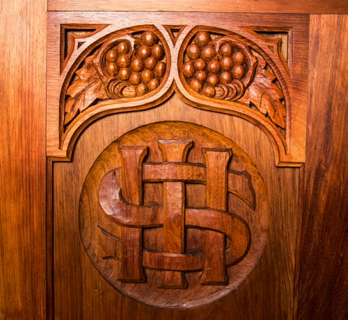 There is no absolute evidence that this altar was carved by Nellie Payne. However it is definitely in her style and she did carve the prayer stall for Agnes Mault (DB22) in the same church, and also carved pieces for All Saints Church in South Hobart which is St Raphael’s parent church.