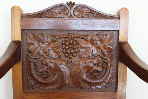 It is not known exactly which Lindesay Clark this chair was carved for – Lindesay Colvin Clark or his son Gordon Colvin Lindesay Clark (1896-1986). However family descendants can remember the chair in the family home at 5 Bifrons Court, Launceston in the early 1930’s.