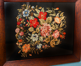 Framed needlework stitched 1847 by Elizabeth Field.