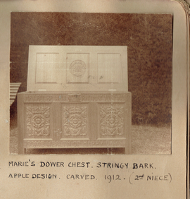 Dower chest for Madge Payne. Carved 1913.