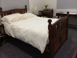 Bed carved by Ellen Nora Payne for herself. 1909.