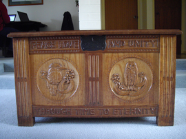 Dower chest for Phyllis (Margaret) Hawker née Payne. Carved 1945.