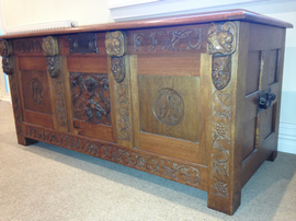 Dower chest for Madge Payne. Carved 1913. Dower chest for Madge Payne. Close up front dower chest. Close up inscription. DB86 Madge was Nellie and Dr Payne’s only daughter, and the eldest of their children, being born in 1888 in Hobart. Later the family moved to Melbourne, then London, where Madge went to Blackheath High […]