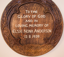 Memorial plaque Elsie Nona Anderson, St Andrew’s Church, Westbury. Carved 1939.