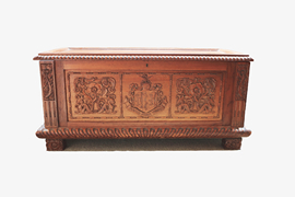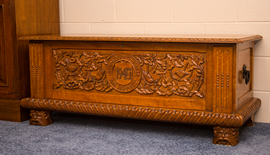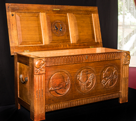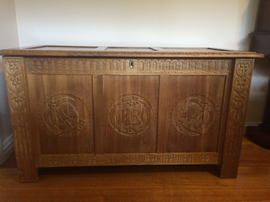 Dower chest for Nora and Tulloch Field. Carved 1947.