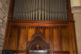 Organ screen carved 1936. Memorial to Fanny Shoobridge, Holy Trinity Church, Hobart.