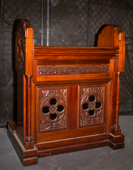 Prayer stall carved in 1930 for Mrs S. Ayton, Holy Trinity Church, North Hobart.