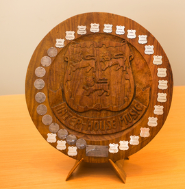 House music shield, Hutchins School, Hobart. Carved 1951.