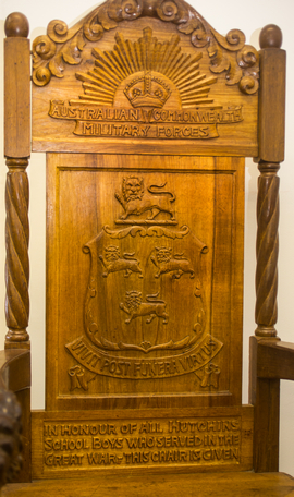 Headmaster’s chair, Hutchins School, Hobart. Carved 1932.