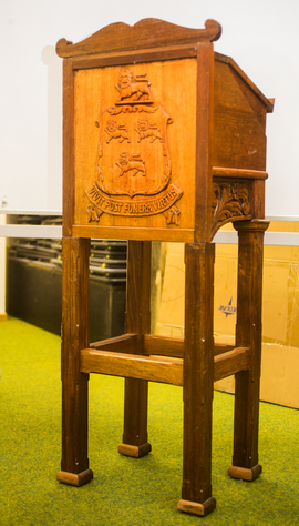 Prefects’ platform desk, St Michael’s Collegiate, Hobart. Carved 1941.