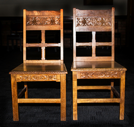 Two side chairs, St Michael’s Collegiate, Hobart. Carved 1943.
