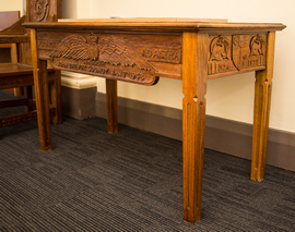 John Soundy memorial platform table, The Friends’ School, Hobart. Carved 1943.